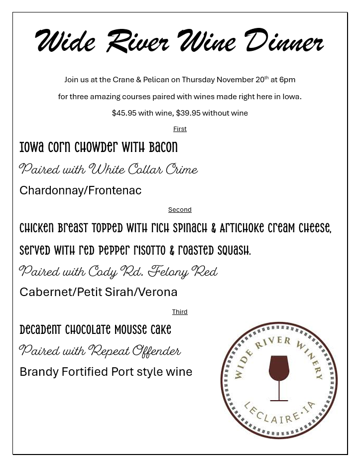 Our mission at the Crane & Pelican is to provide our guests with the highest quality, full service, fine-dining experience, in our beautiful & historic location, The Dawley House.